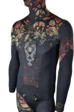 Nuova muta ”HYDRA” in neoprene foderato superstretch mimetico a scomposizione d’immagine, interno in spaccato, neoprene morbido media densità resistente alla pressione ma non è rigido.
