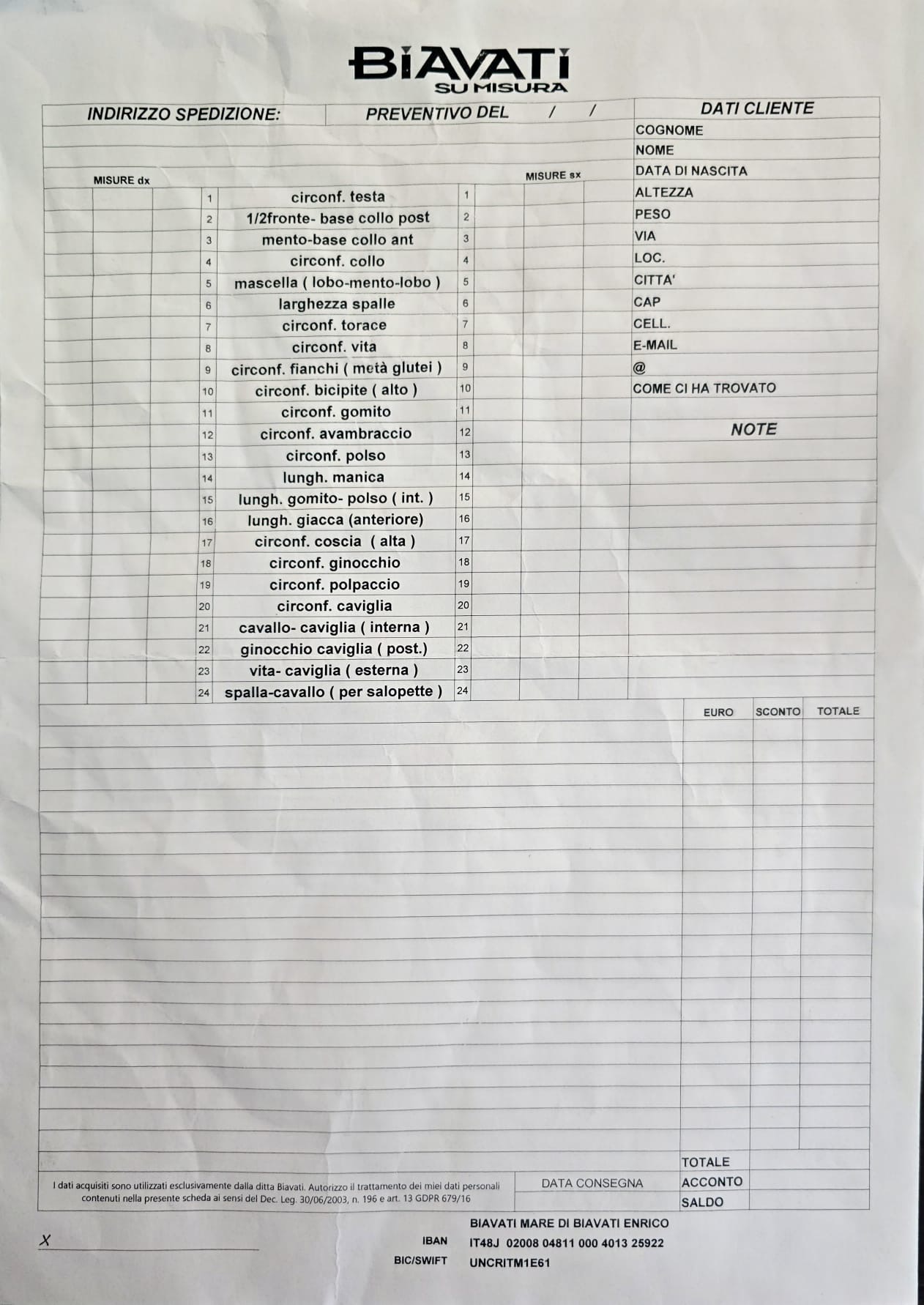 Nella galleria foto, trovate tutte le misure da prendere e il foglio misure.