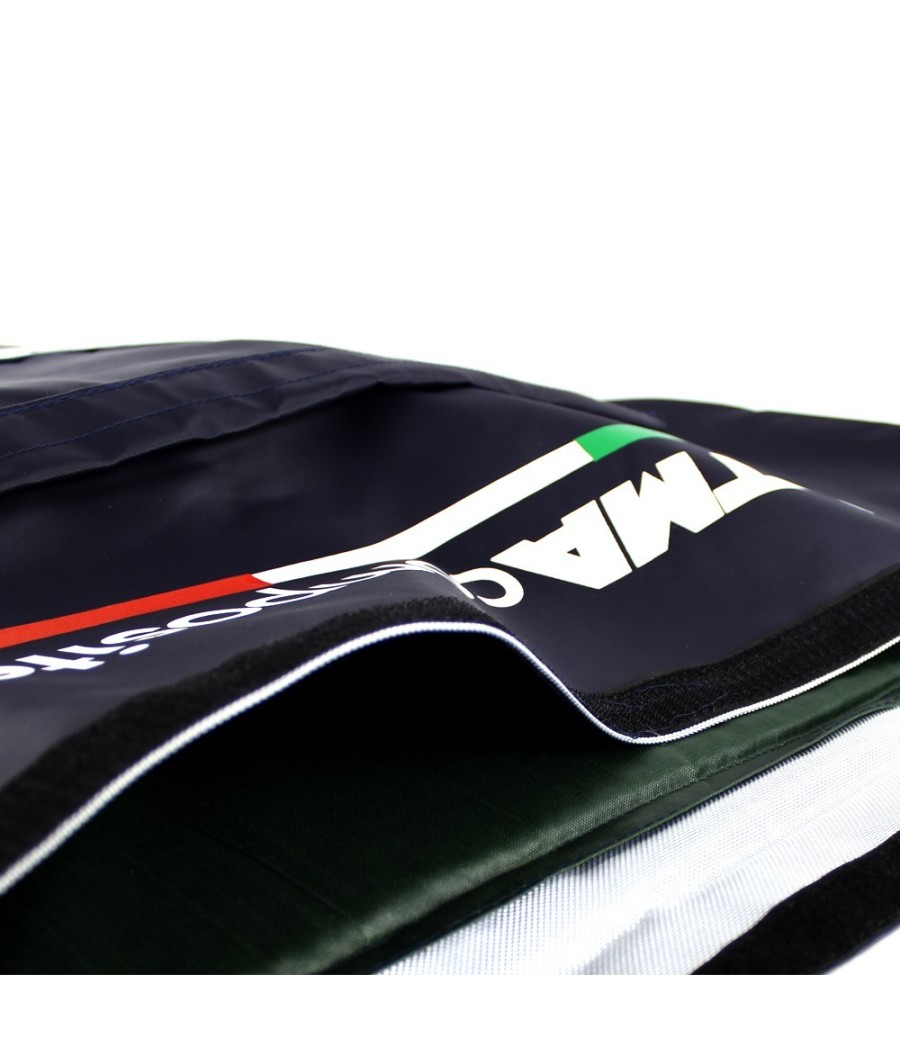 Presenta una chiusura velcro nella parte superiore, una comoda tasca portaoggetti 40×20 cm e una maniglia laterale e spallacci imbottiti.
